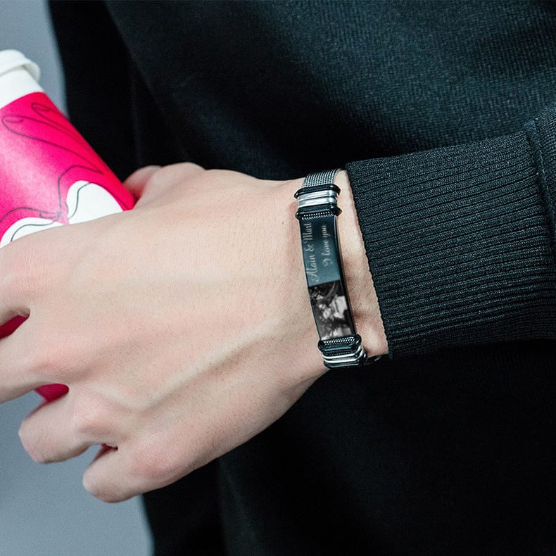 Custom Engraved Photo & Name Inscription Bracelet For Men - Anniversary Gift