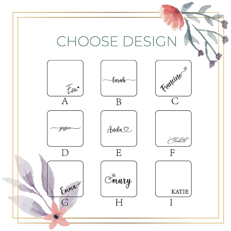 Personalize the top with your choice of name/text in rose gold, white or black.